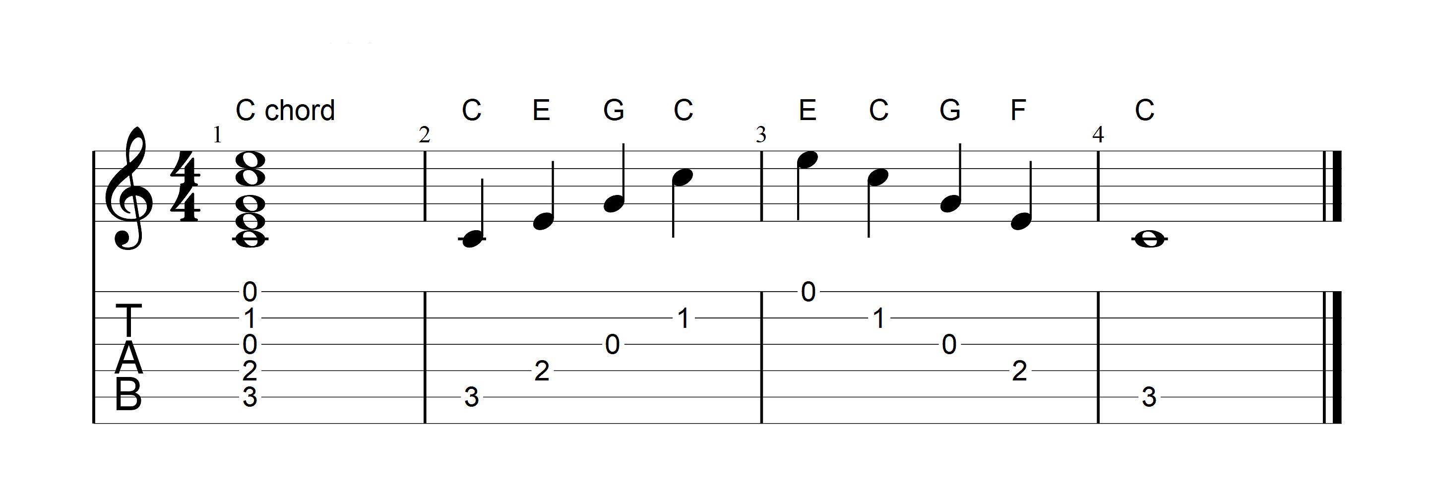This example uses quarter notes, that is one beat to a note.