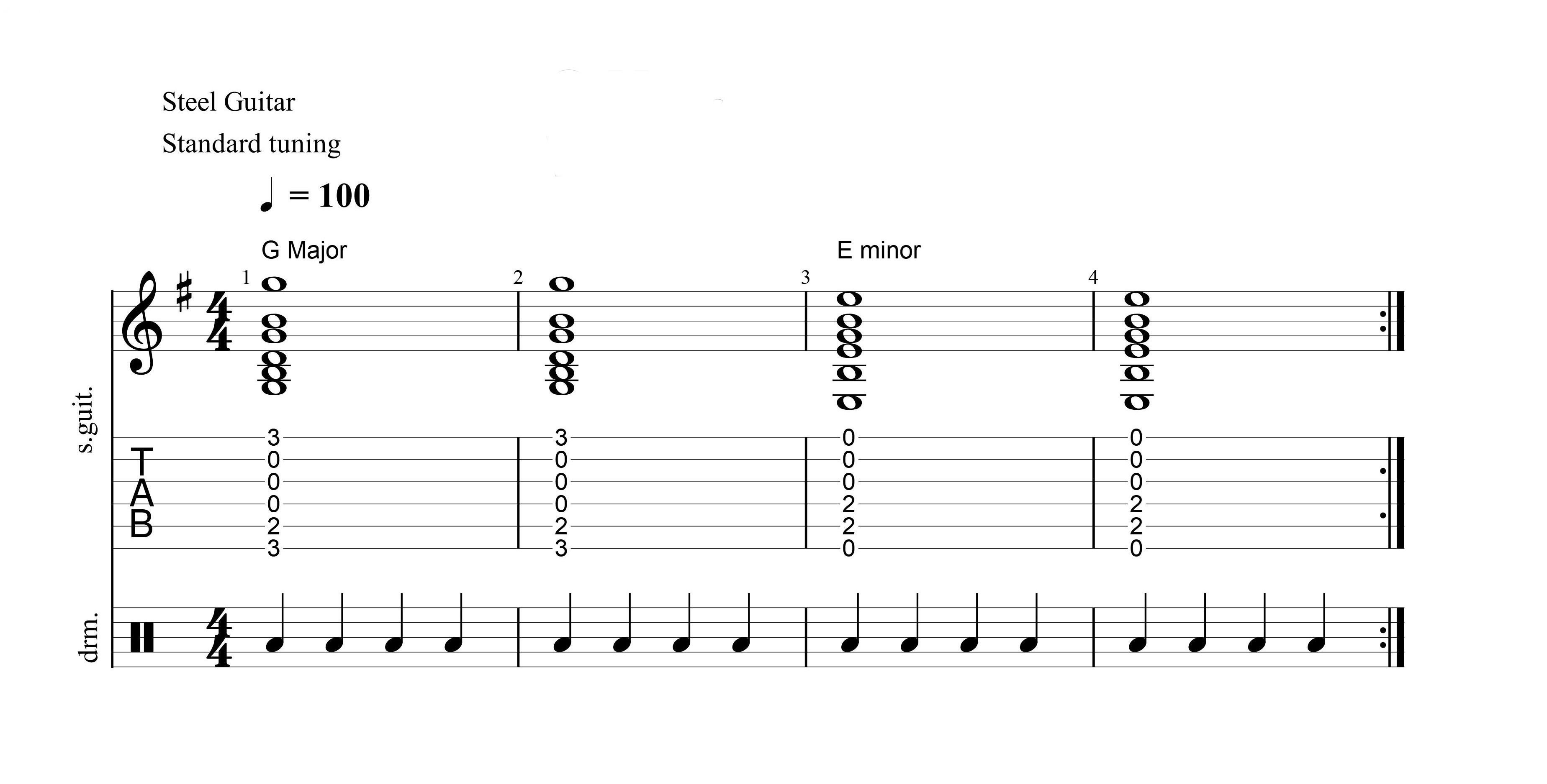 then E minor whole note for 2 bars