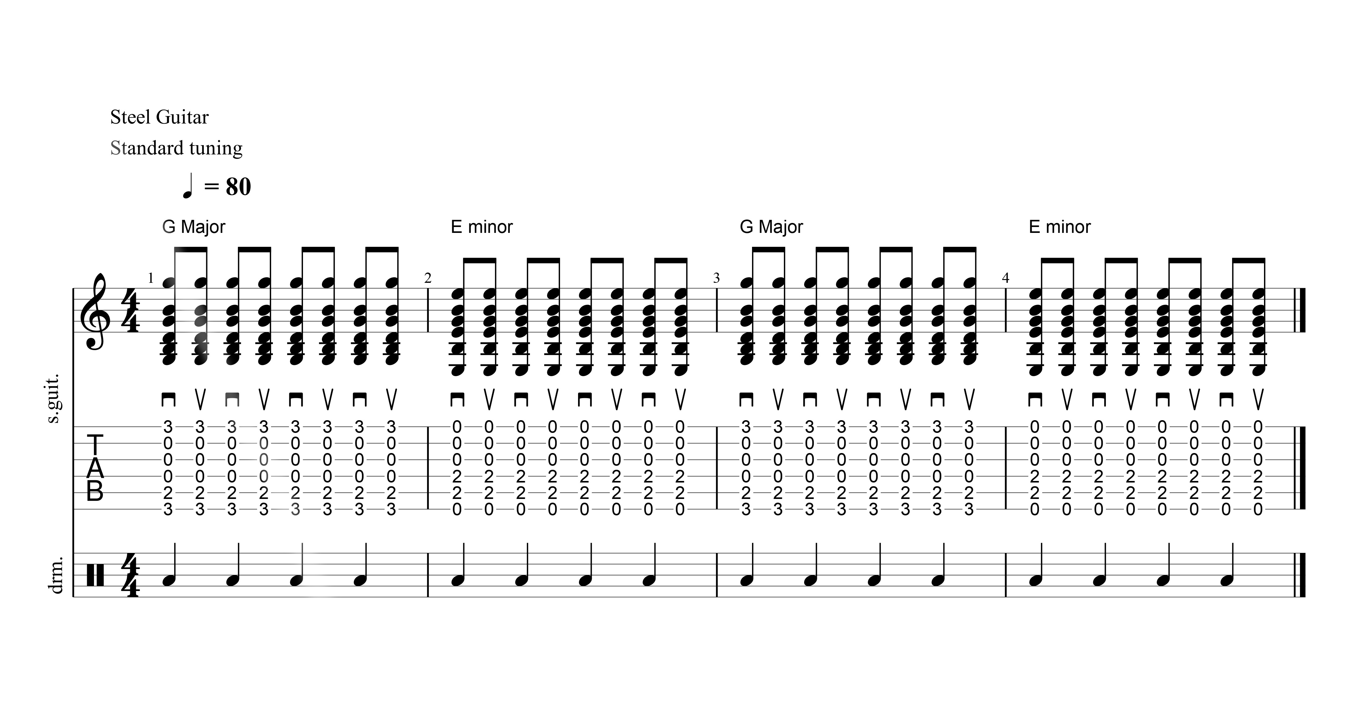 Play the chord G major for one bar and E minor for one bar. Repeat.