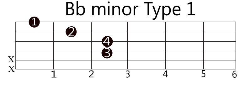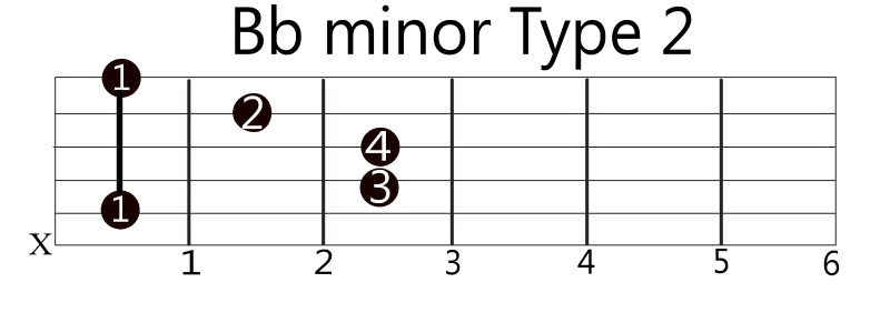 At the 2nd fret it is a "B minor" --- Move up 1 more fret for "C minor"
